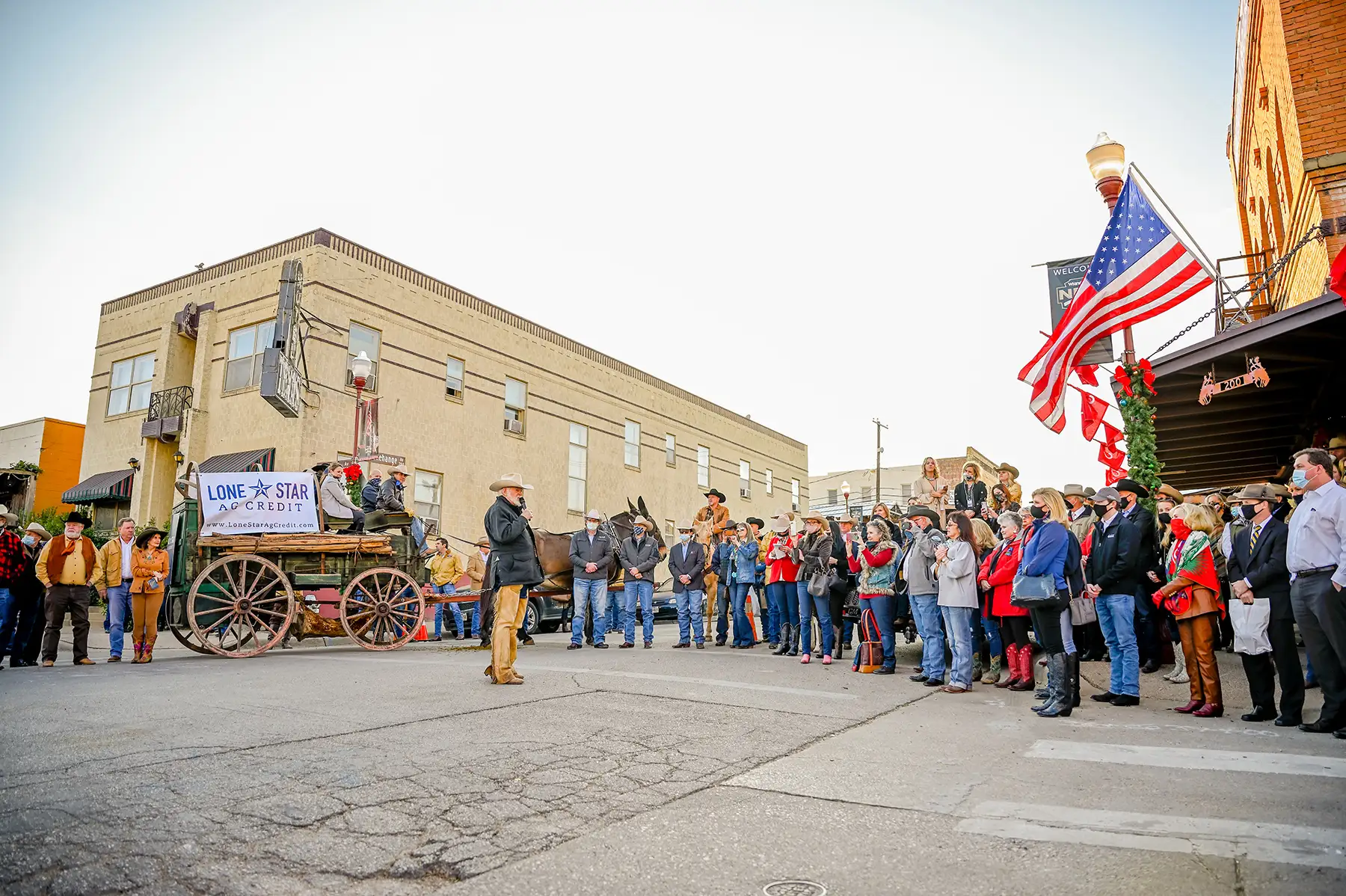 “In the ranch’s 150th year, our connection to the Burnett legacy of strength, faith, integrity and excellence couldn’t be stronger,” says Brandie Blodgett Mustian, manager of Four Sixes retail division. “Our cowboys will pay tribute to the vision and leadership of Mrs. Marion in a touching way that is traditional in our western culture. Mrs. Marion’s longtime friend Red Steagall will host a program when the herd reaches Four Sixes Supply House on West Exchange.”