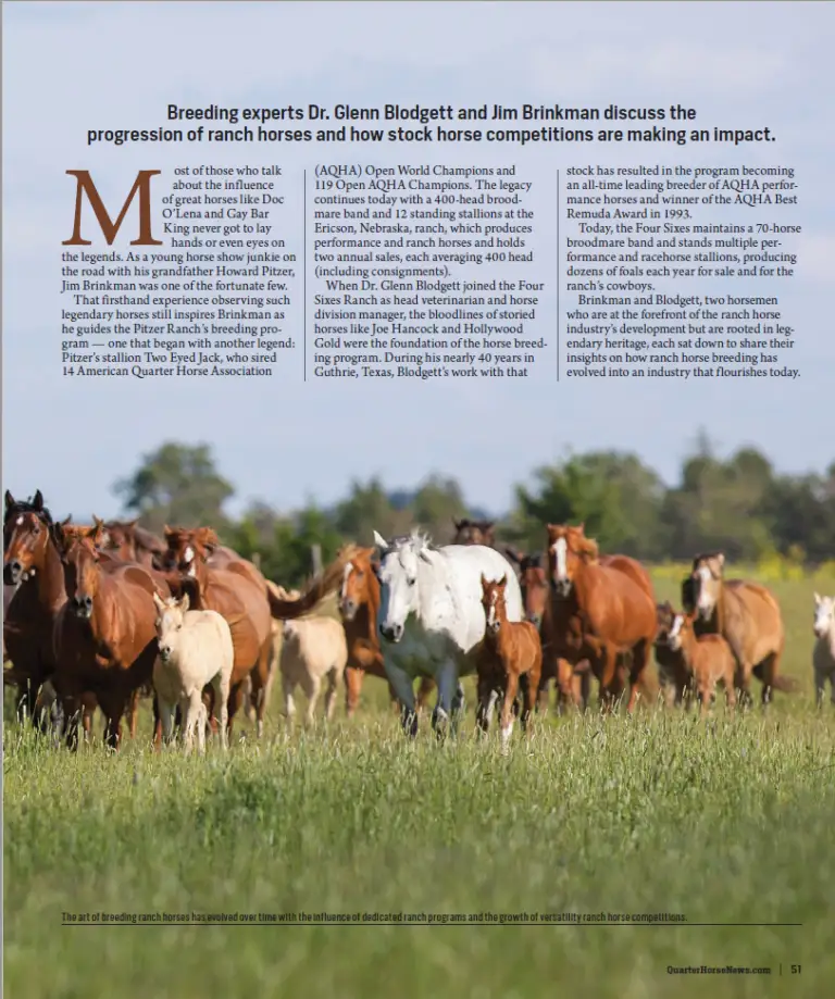 Brinkman and Blodgett, two horsemen who are at the forefront of the ranch horse industry’s development but are rooted in legendary heritage, each sat down to share their insights on how ranch horse breeding has evolved into an industry that flourishes today.