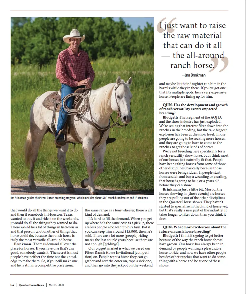 “I just want to raise the raw material that can do it all — the all-around ranch horse.”— Jim Brinkman